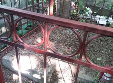 В первую очередь убираем кресты и старую лавочку. Чистим ограду от старой краски.