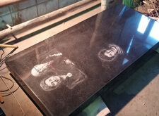 Решено было переделать все, если бы ограда не была такая крепкая, ее тоже заменили бы, но ограничились только ремонтом и перекраской. Для начала мы отобрали изображения для портрета и сделали макет гравировки.