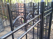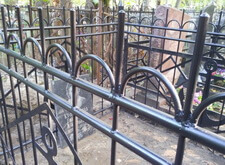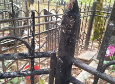 Далее демонтируем все с территории могилы и выпрямляем ограду. Для этого потребовалось полностью откопать две задние ножки, выпрямить ограду и заново залить цементом.