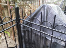 На могиле в первую очередь мы занялись оградой. Обожгли старую краску. В этот раз обжиг занял больше времени. Пришлось жечь ее в два захода.