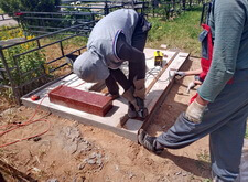 Начинаем собирать гранитное надгробье, предварительно выставив цветник.