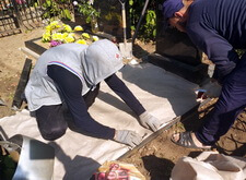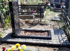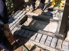 На данном объекте нам предстояло ровно установить покосившийся памятник, а вокруг цветника положить гранитную брусчатку.