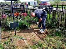 В данном заказе мы столкнулись с достаточно запущенной могилой: вся территория места захоронения заросла травой. Клиент пожелал избавиться от неё, заказав у нас уборку.
