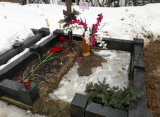 Затем приносим надгробье, предварительно укрепив на нём фотокерамику с изображением усопшего, устанавливаем его. Территорию участка засыпаем каменной крошкой, в цветник сажаем растения, в одном из углов места захоронения организовываем клумбу.
