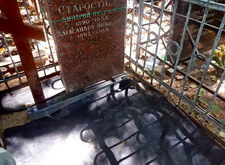 Обжигаем ограждение, параллельно с этим наносим на надгробье новую надпись.