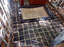Памятник выставлен, по желанию клиента на участке остался деревянный крест. Так выглядит промежуточный этап работы (фотографии были сделаны пока замытая брусчатка сохла).